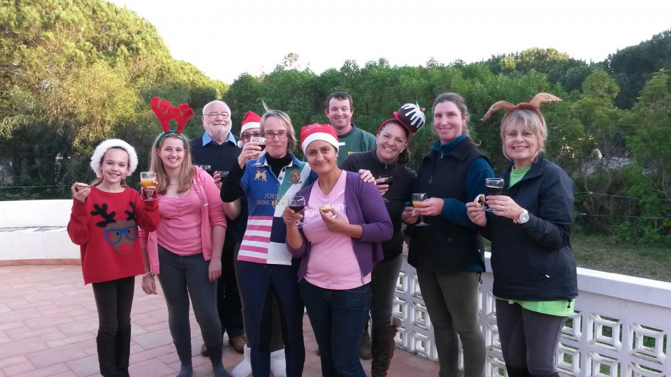 pics: our villa, Pinetrees friends eat mince pies and raise their glasses at Christmas, Summer Picnic in the park in Quinta do Lago every Friday evening, riding out on a winter riding holiday
